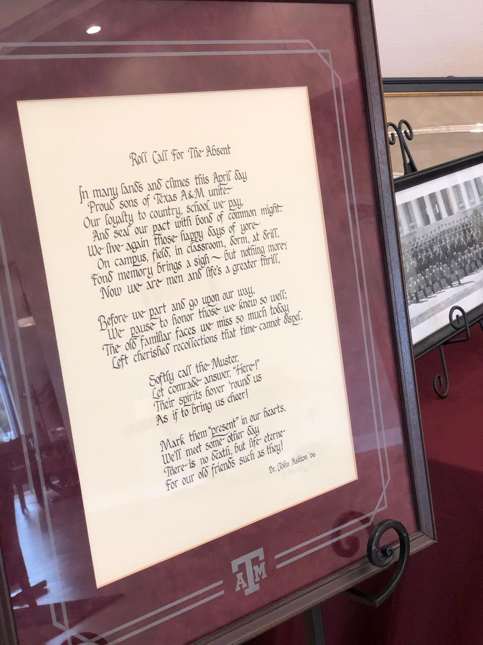 We are honored to serve many of the Aggie families whose lost loved one is named during “Roll Call for the Absent” during Aggie Muster on April 21 of each year. Callaway-Jones Funeral Home can create a Texas A&M Aggie funeral theme like no one else. Please know we are here to support your family as fellow Aggies and former students.